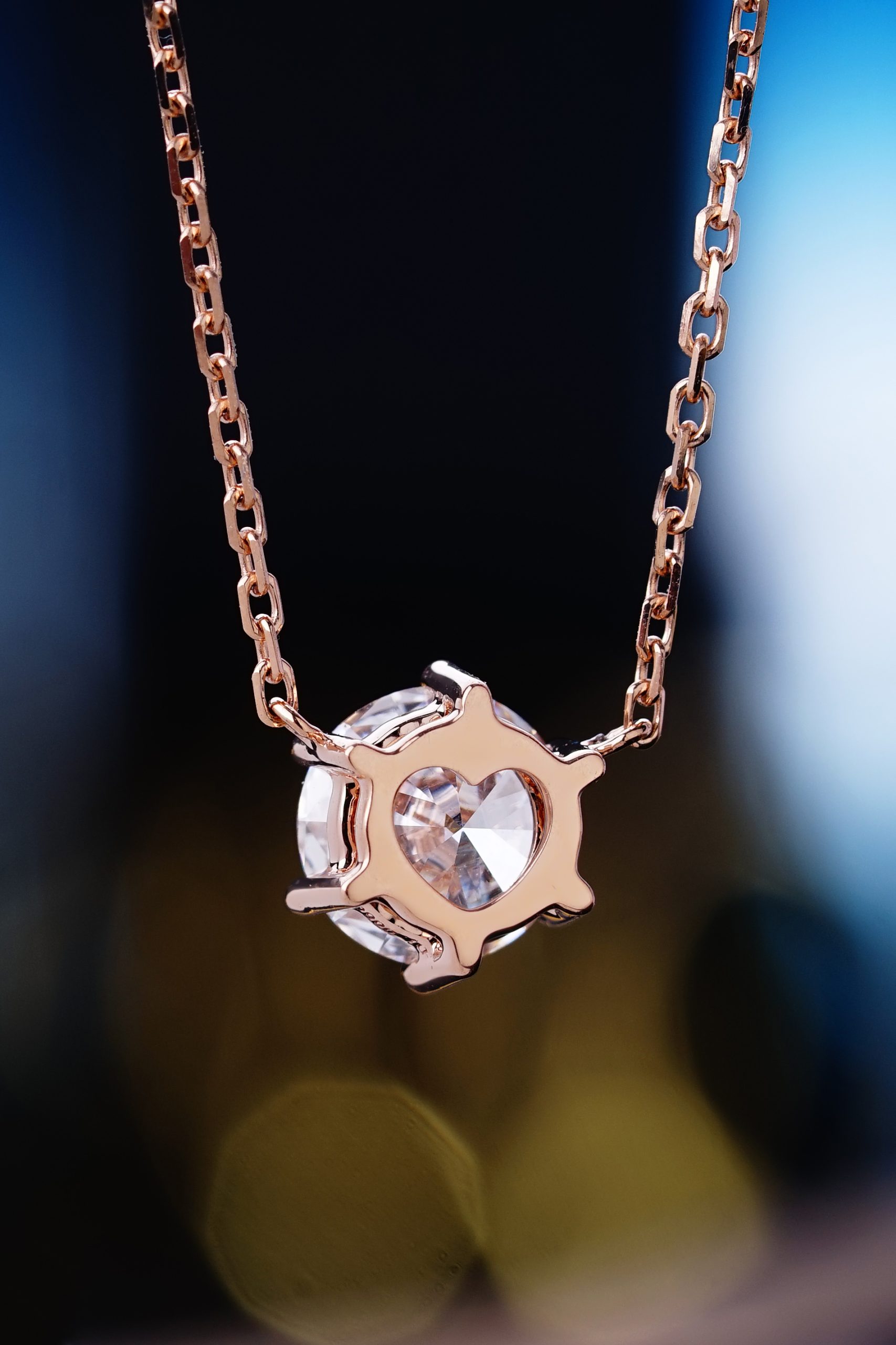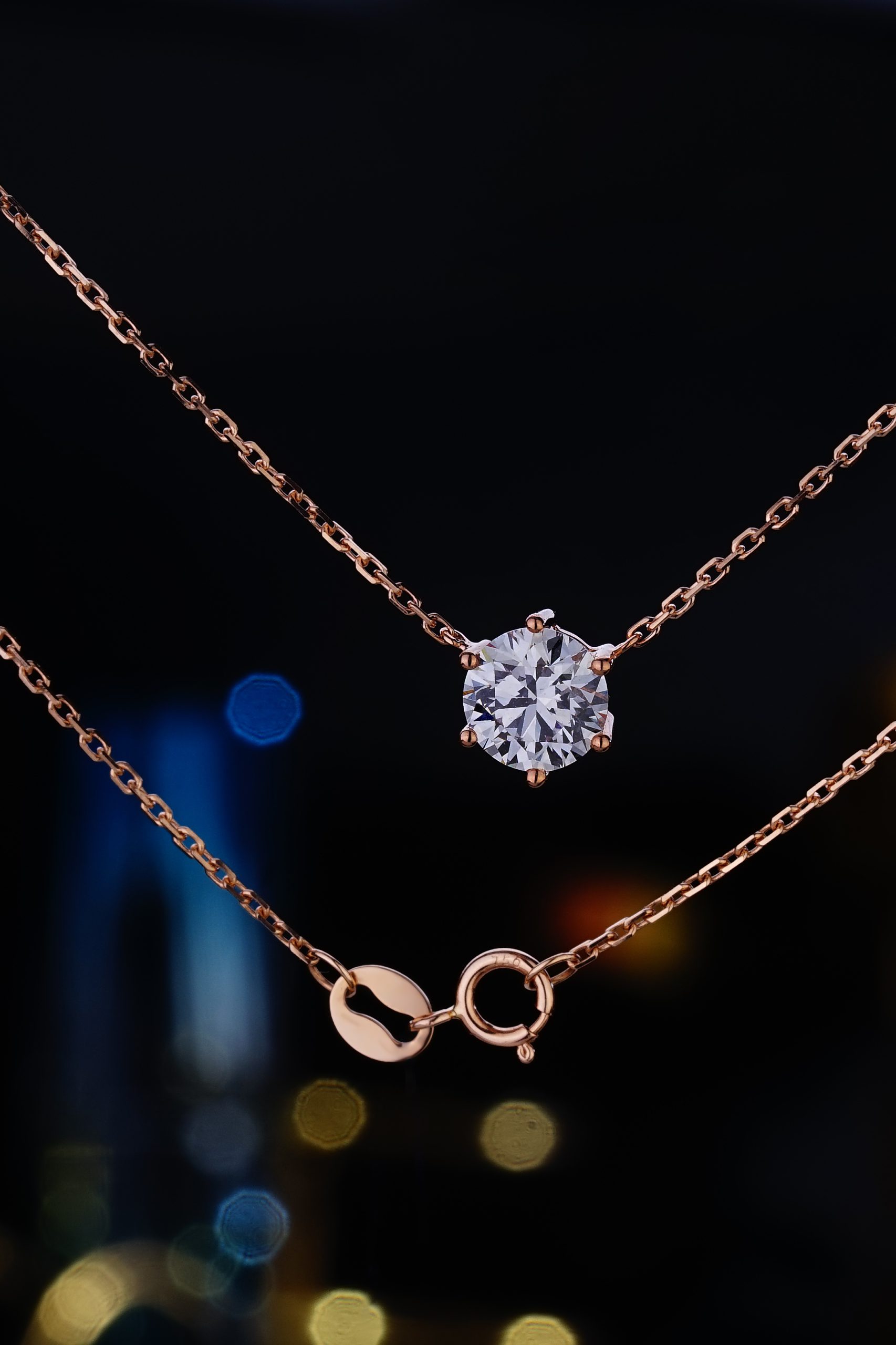 Moonlight necklace embodies timeless elegance and understated luxury. Suspended on a delicate, rose-gold chain, the pendant showcases a brilliant-cut diamond that captures light from every angle, radiating a dazzling sparkle. The diamond is meticulously set in a classic prong setting, allowing its flawless beauty to take center stage. The combination of the warm-toned gold and the crystal-clear brilliance of the diamond creates a perfect harmony of modern sophistication and classic allure.